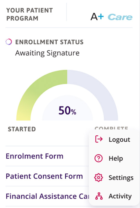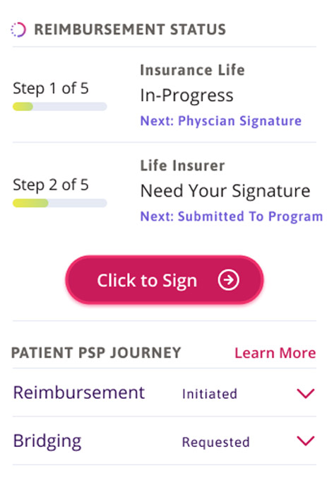 - Patients, physicians, PSP teams all have visibility into the status of the patient’s enrolments and reimbursements